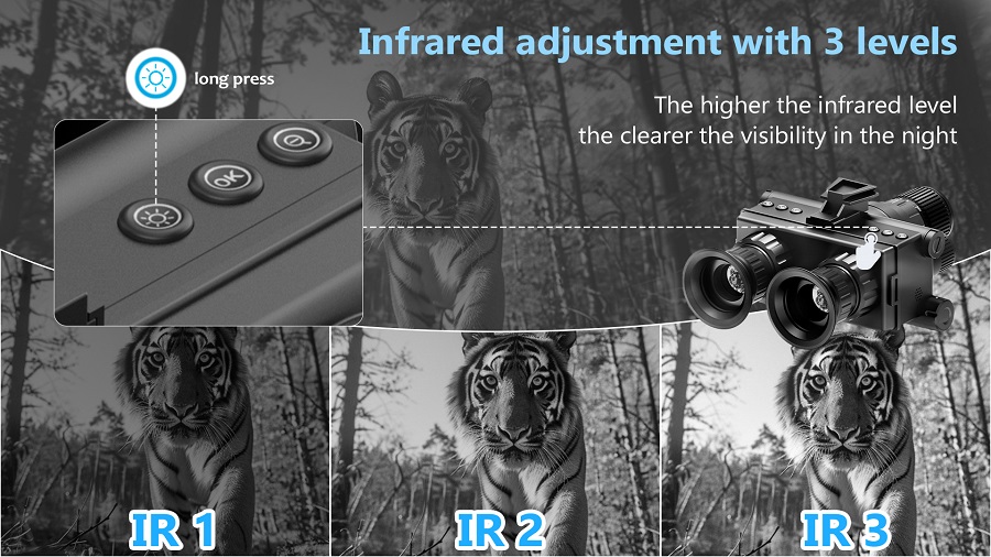 4、600m Night Vision Range:See targets clearly up to 600 meters with 3W 850nm IR spotlight .